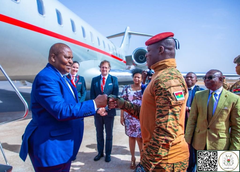 (Ouagadougou, December 19, 2024). The President of Faso, Head of State, Captain Ibrahim TRAORÉ, welcomed at Ouagadougou International Airport, the President of the Central African Republic, Faustin-Archange TOUADERA, on a friendship and working visit to Burkina Faso.