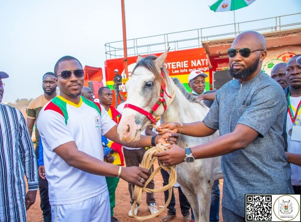 It is therefore the jockey Nourou KABORE of the Faso stable mounted on Vendes (bib n ° 1), who beat his competitors. He wins, in addition to the trophy, the sum of 500,000 FCFA. He received his prize from the hands of the Chief of Staff of the President of Faso, Captain Martha Céleste Anderson Dekomwin MEDAH, representing the Head of State, Captain Ibrahim TRAORE.